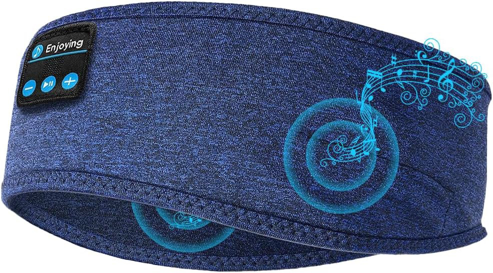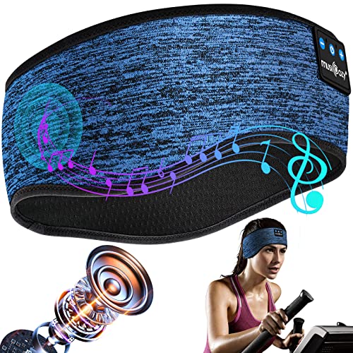 MUSICOZY Sleep Headphones Headband Bluetooth Soft Headphones for Sleeping & Sport with Thin Speakers,Wireless Music Earphones Tech Gifts for Men Women Teens (blue & black)