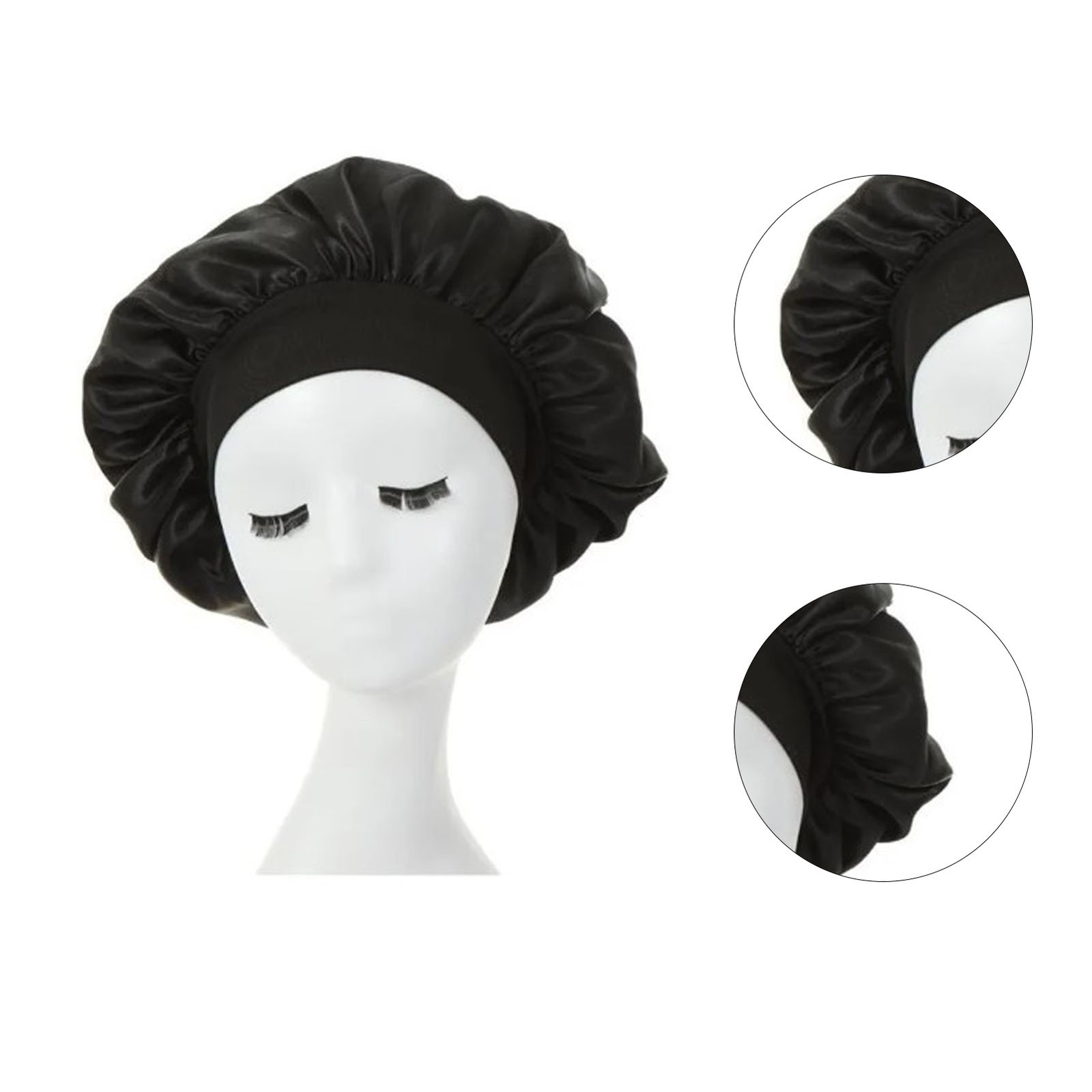 Hair Bonnet Black Wide Edge High Elastic Headband Sleep Cap For Women