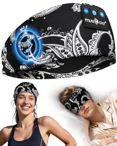 MUSICOZY Sleep Headphones Headband,Adjustable Sleeping Headphones with Bluetooth & HD Hi Fi Speakers,Sleep Gifts for Side Sleeper/Travel/Meditation/Yoga/Audio Books/Insomnia