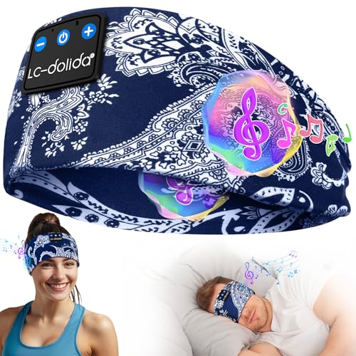 LC-dolida Sleep Headphones Bluetooth Headband, Wireless Comfiest Music Headband,Soft Headphones for Sleeping in Bed Sport Band with Ultra-Thin HD Speakers Perfect for Workout,Jogging,Yoga,Audio books