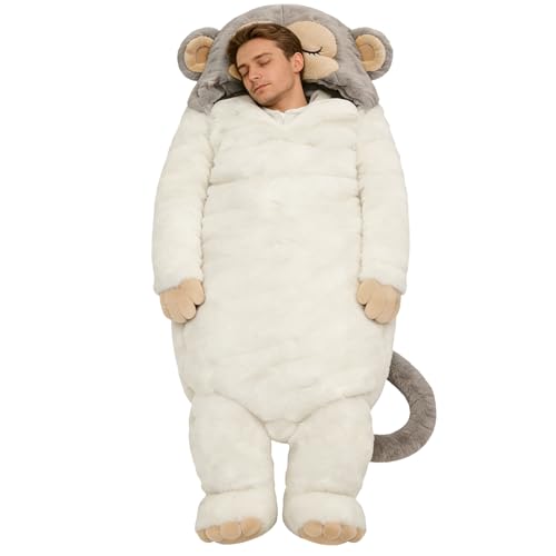 Sleeping Bag for Adults | Warm Machine Washable Adorable,Plush Sleep Bag Monkey Shape,for Bedroom Dorm Camping Travel Women Men Girlfriend Boyfriend