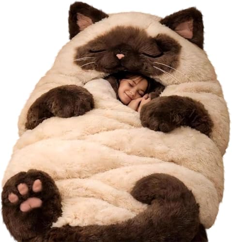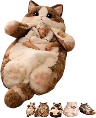 Cat Sleeping Bag for Human,Machine Washable fluffy cat sleeping bag for adults,Adorable Cat Envelope SleepingBag,Ultra-Soft Wearable Blanket & Plush Cat Bed,Cozy Napping Sack,for Cat Lovers (#A)