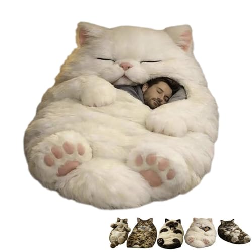 Cat Sleeping Bag for Human,Machine Washable fluffy cat sleeping bag for adults,Adorable Cat Envelope SleepingBag,Ultra-Soft Wearable Blanket & Plush Cat Bed,Cozy Napping Sack,for Cat Lovers (#C)