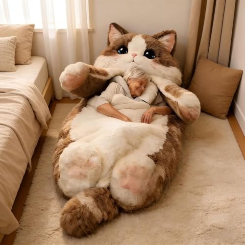 Cat Shaped Sleeping Bag For Adults,Washable Plush Cat Envelope Sleepings Bags,69"x31" Extra Large Plush Floor Lounger,for Indoor Bedroom Living Room Playroom Apartment Dorm Birthday Housewarming