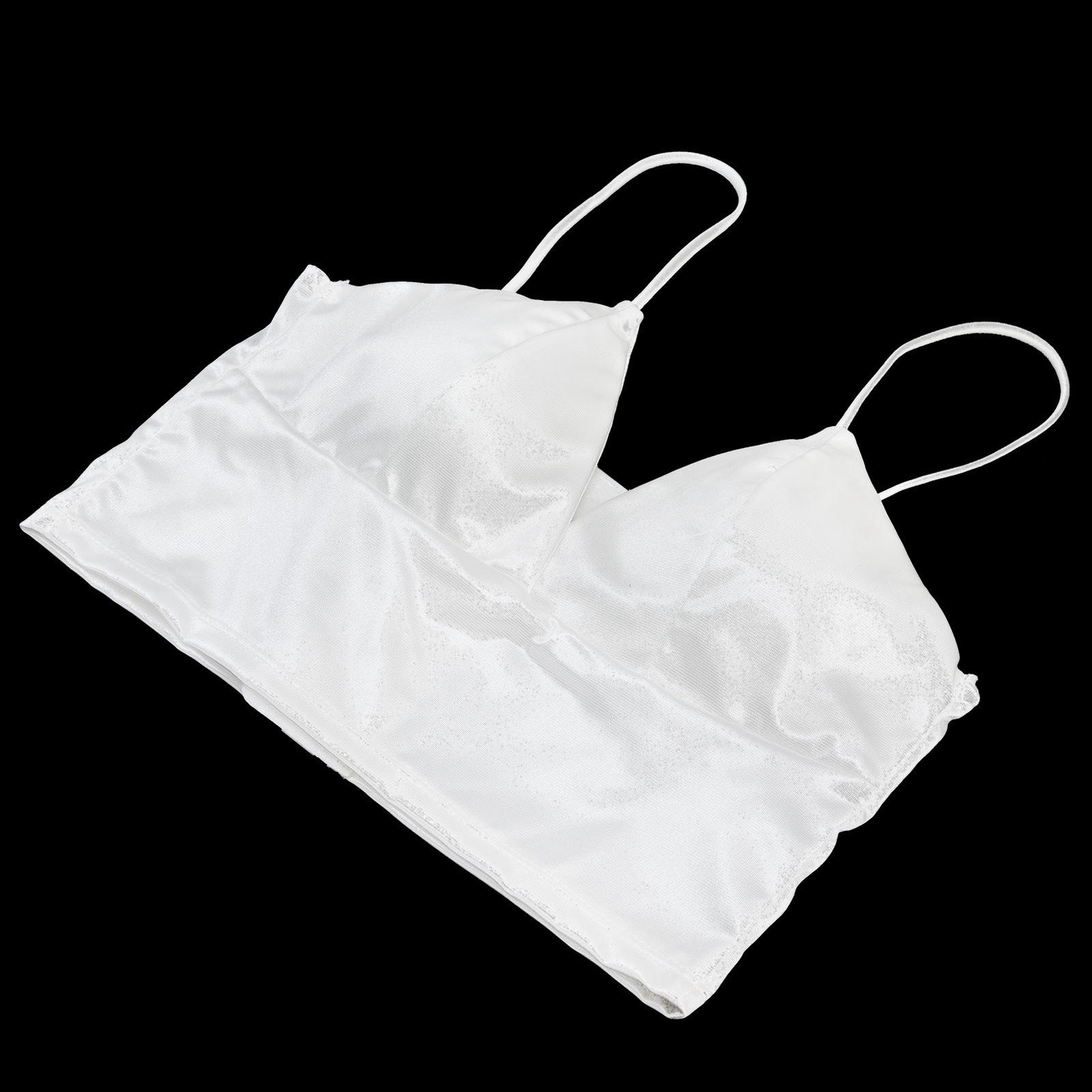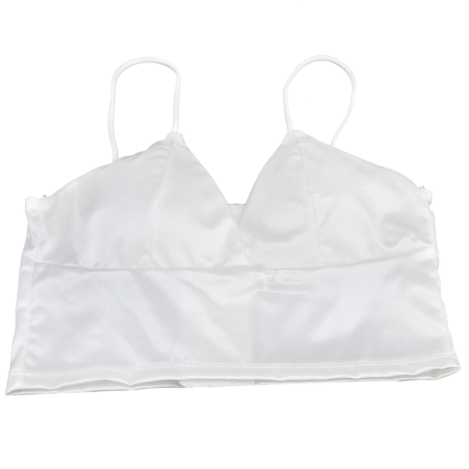 White Women's Satin Bralette Breathable Wireless Sleeping Bra Deep V Ne