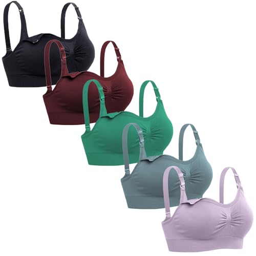 Lataly Womens Sleeping Nursing Bra Wirefree Breastfeeding Maternity Bralette Pack of 5, Pack of 5, L