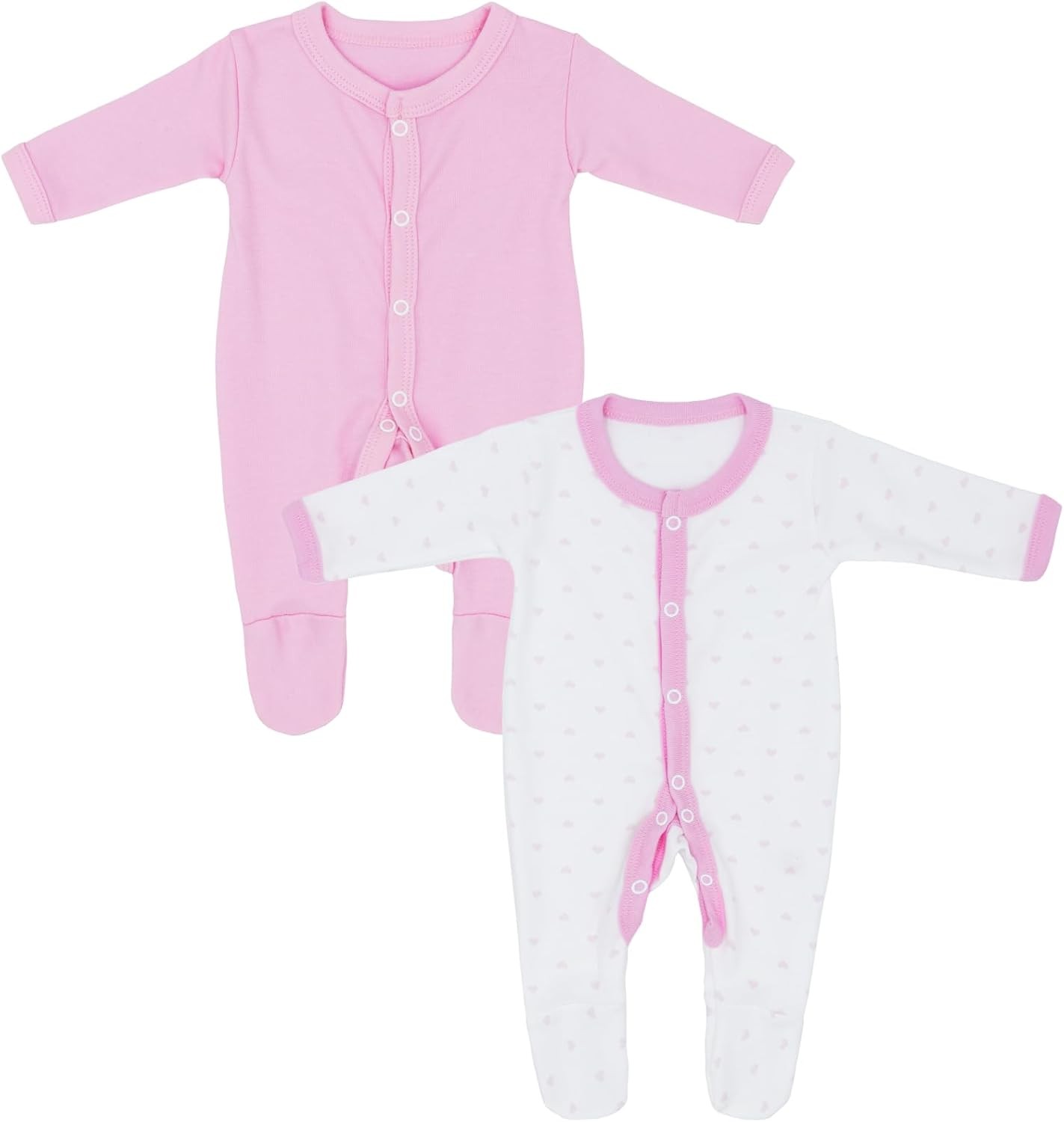 Premature Baby Clothes, Tiny Baby Sleepsuit, Made in Britain, 2 Pack for Premature Boys & Girls, Pink, 5 to 8 lbs