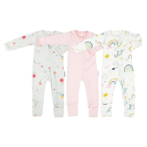 100% Cotton, Two-Way Zipper Baby Sleepsuit for Boys and Girls, Footless with Fold Over Cuffs on Hands and Feet, 3 Pack Pinks, 6-12 Months