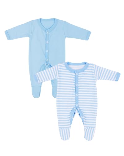 Premature Baby Clothes, Tiny Baby Sleepsuit, Made in Britain, 2 Pack for Premature Boys & Girls, Blue, 5 to 8 lbs