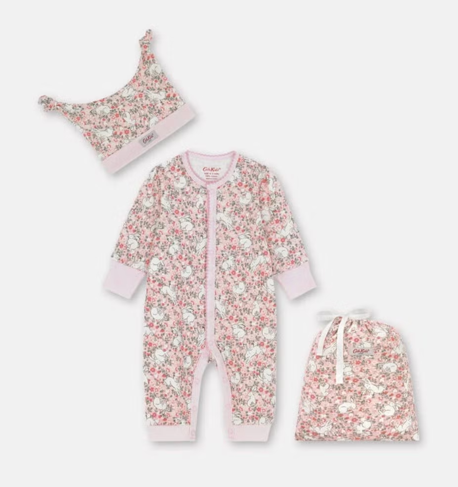 Cath Kidston Cotton Footless Sleepsuit and Hat Baby Gift Set 3-6 Months NEW