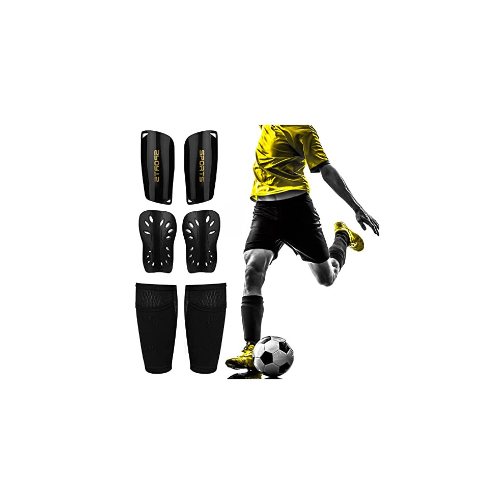 Football Shin Guards with Sleeve, Black Shin Guards Pads + Shin Guard Sleeves, Breathable Soccer Shin Pads for Mens, Shin Pad Sleeves for Football Games Protection Reduce hit & Injuries
