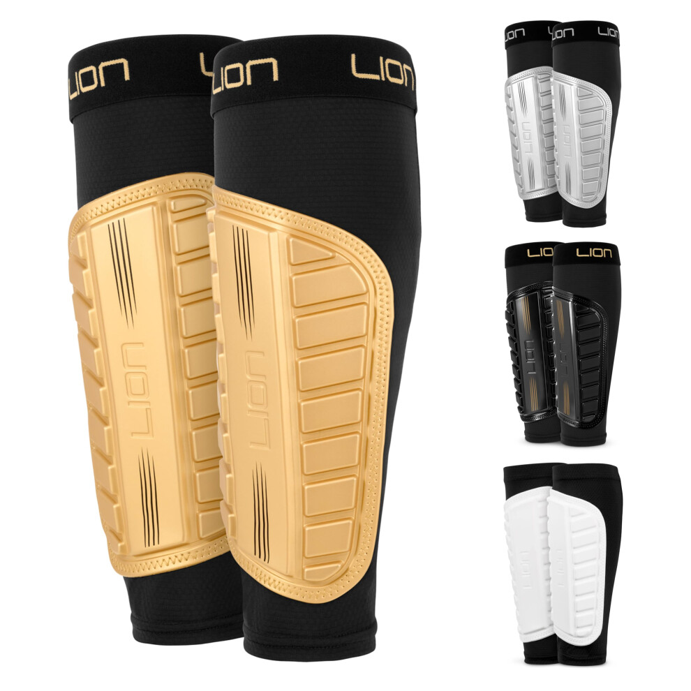 Football Sleeve Style Shin Pads/Guards - Flexible Comfort & Protection - For Kids & Adults - Gold (Large Adults)