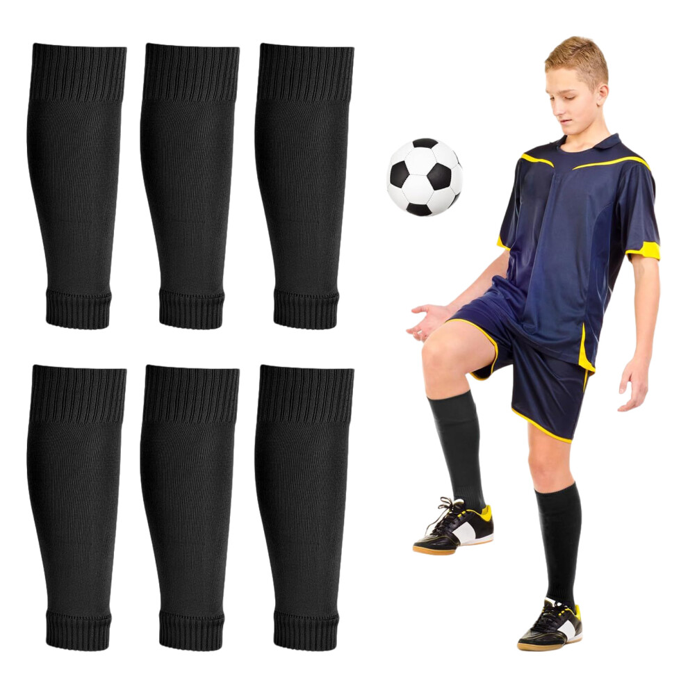 3 Pair Football Sock Sleeve, Soccer Shin Guards Sleeves, Team Leg Sock Sleeve, Holding Shin Pads ( Black )