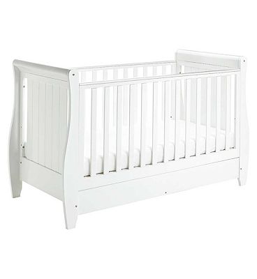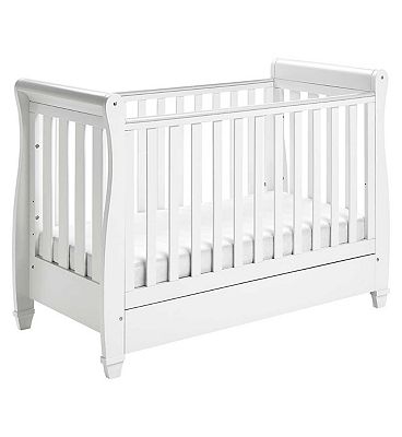 Obaby Stamford Luxe Cot Bed with Drawer - Sleigh Style - Adjustable Base - White