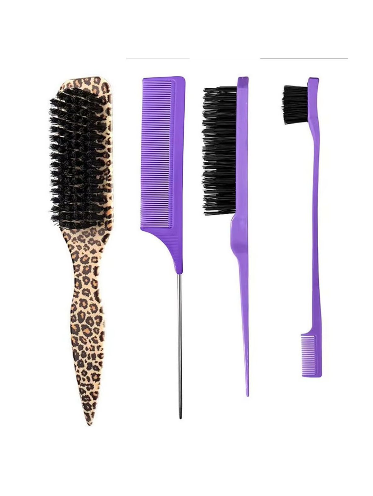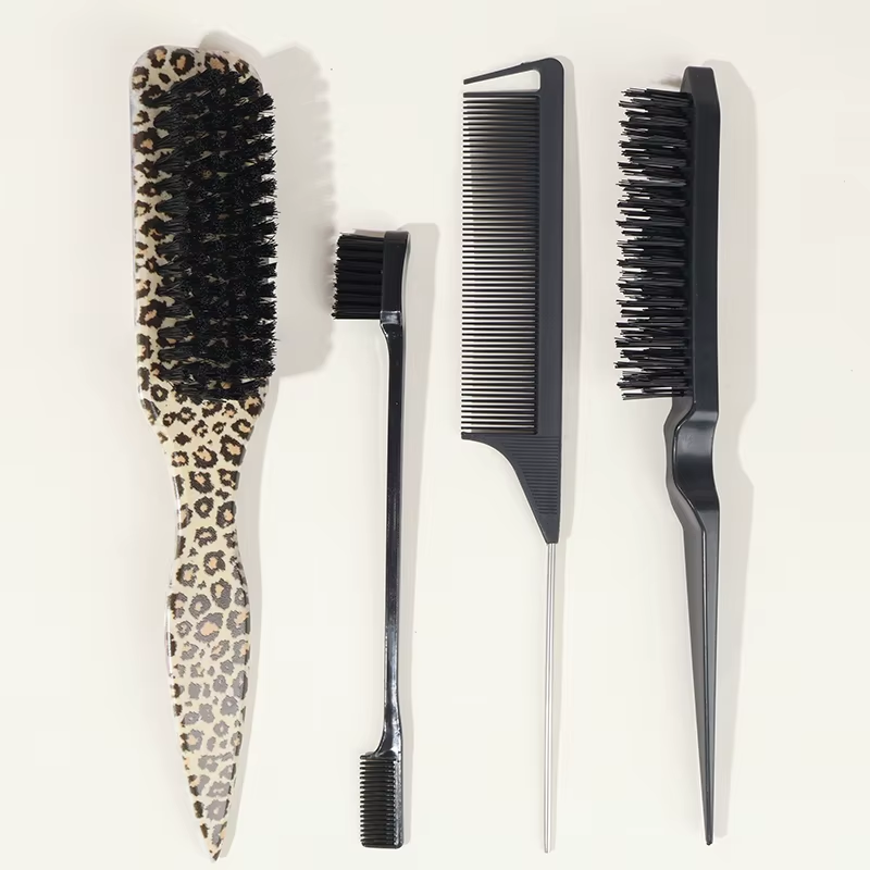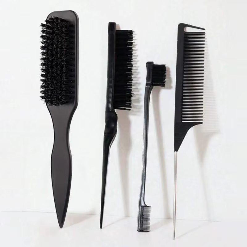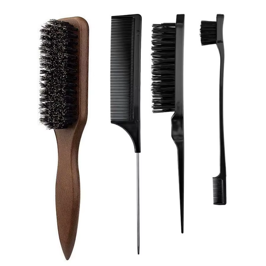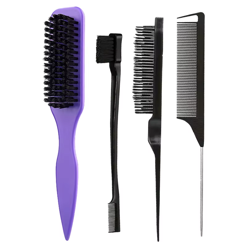 3-Piece Hair Slick-Back Brush Set - Teasing & Edges Brush for Women's Salon Sty