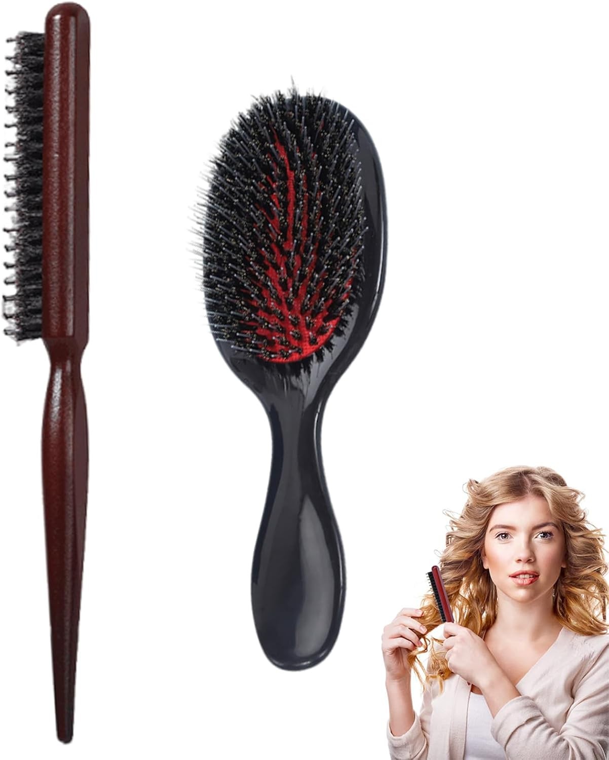 2 Pcs Hair Brush Set - Slick Back Bristle Brush for Teasing, Combing, Scalp Mas