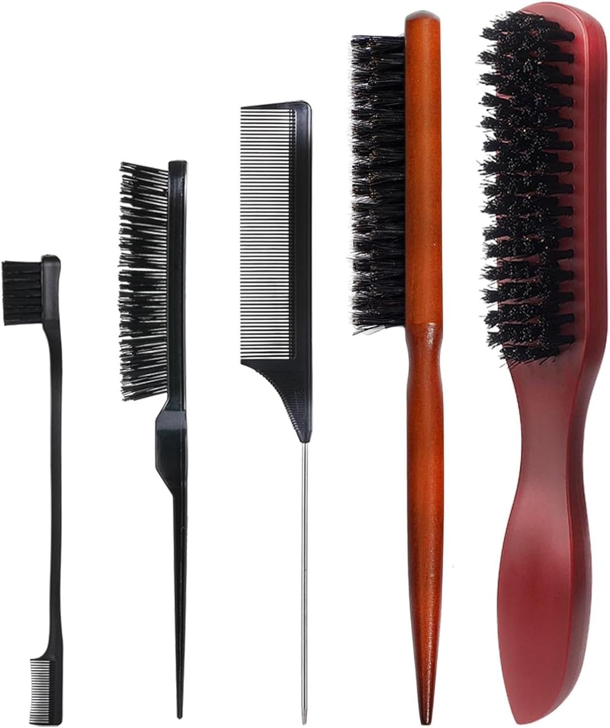 5 Pcs Slick Back Brush Set - Smoothing & Teasing Brush for Men's Hair & Beard -