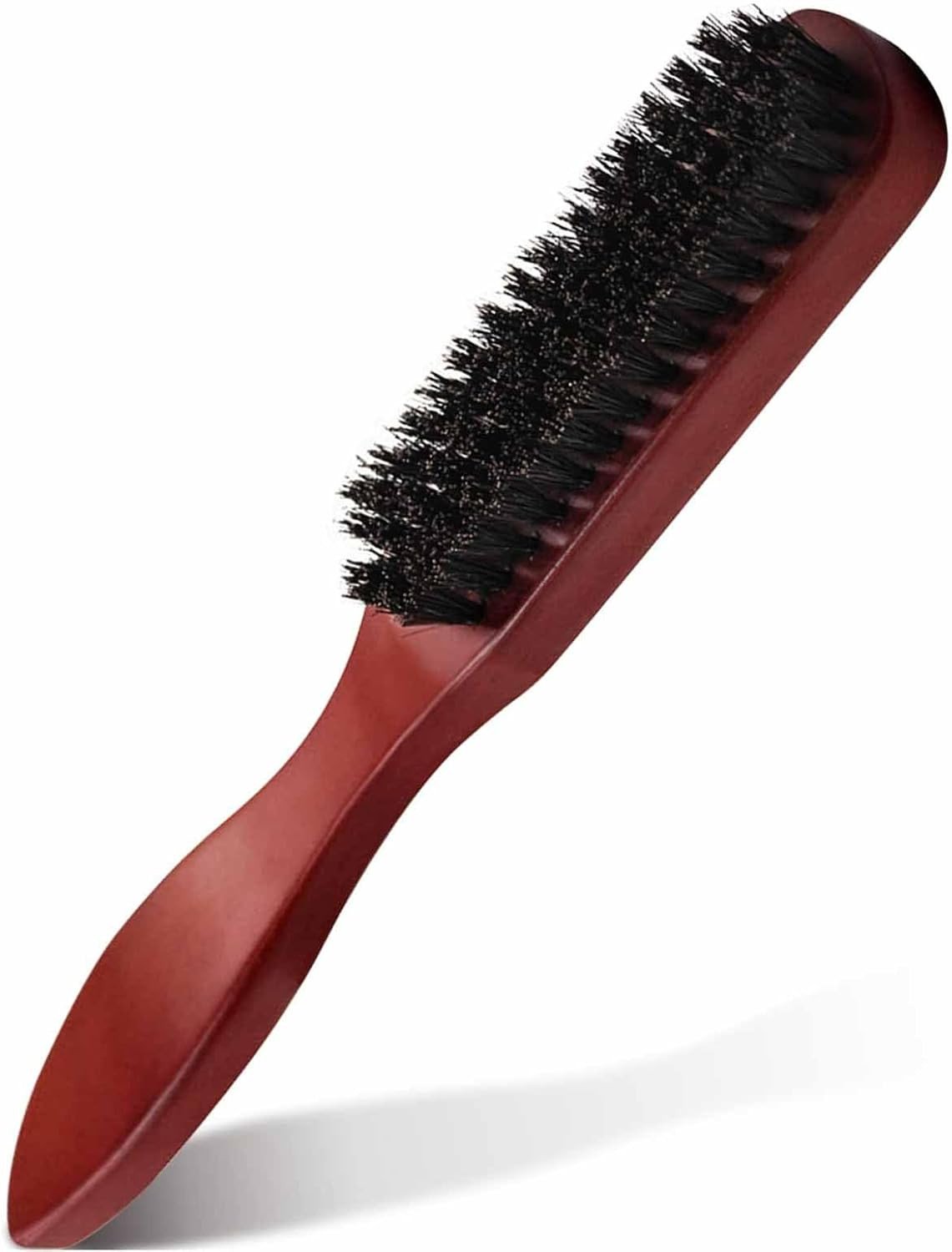 Slick Back Boar Bristle Brush - Red-Brown Beard and Hair Smoothing Tool for Afro