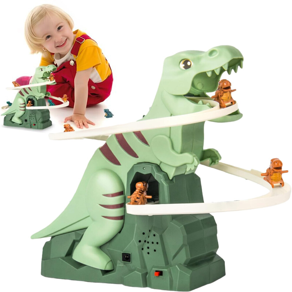 Dinosaur Chasing Race Track Toy, Kids Dinosaur Toys with 3 small dinosaurs, Lights and Music, Dinosaur Roller Coaster Toy, Dinosaurs Climbing Slide Toys for Toddlers and Boys Girls 3+