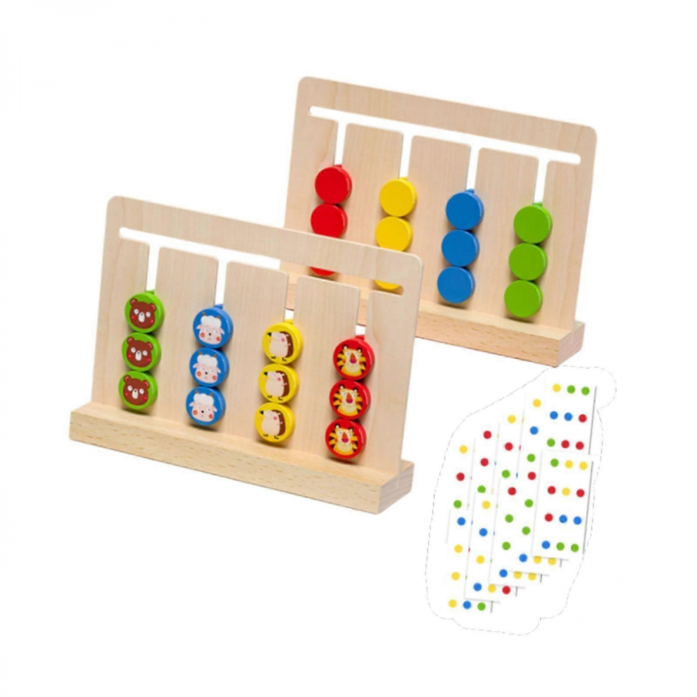 Fullware 4 Colors Wooden Slide Puzzles for Toddlers 3 4 5 6 7 8, Random Beads P