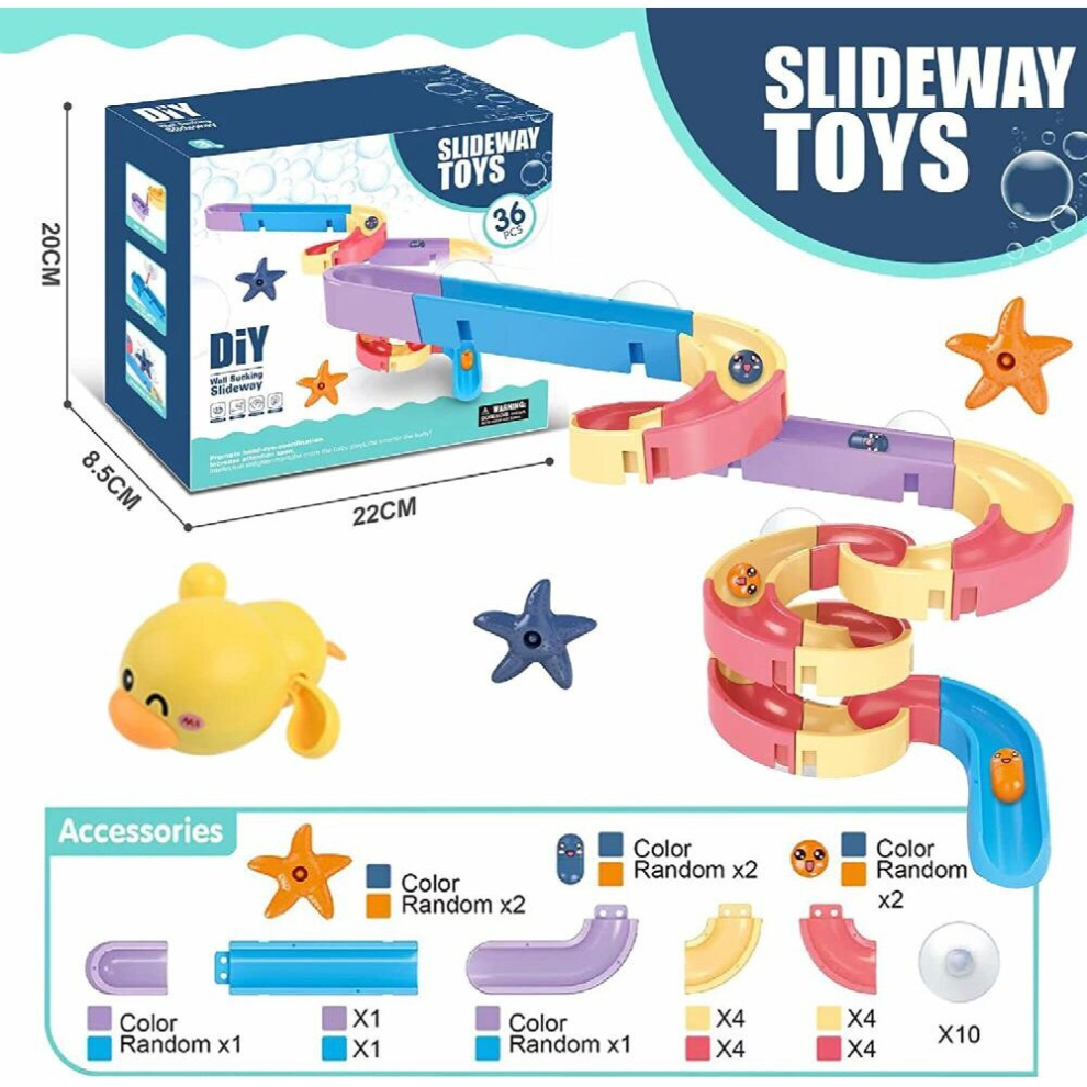 Interactive Bathtub Marble Run - 14pc Suction Cup Water Slide Track Set for Toddlers, BPA-Free Educational Waterfall Bath Toys