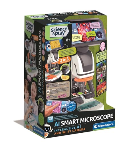 Clementoni Digital Microscope with WiFi – 2-in-1 Optical and Digital Microscope with Camera, App and Interactive Slides for Kids 8+