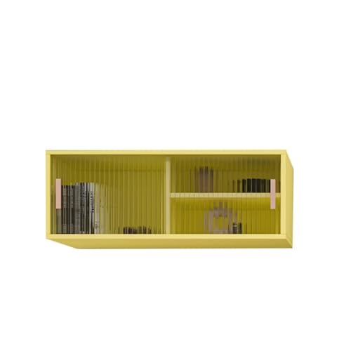 Wall Cabinet, Wood Cabinet with Large Capacity, Acrylic Sliding Door Wall Cabinet for Living Room, Match a Variety of Decorations(Yellow, 23.6 Inch)