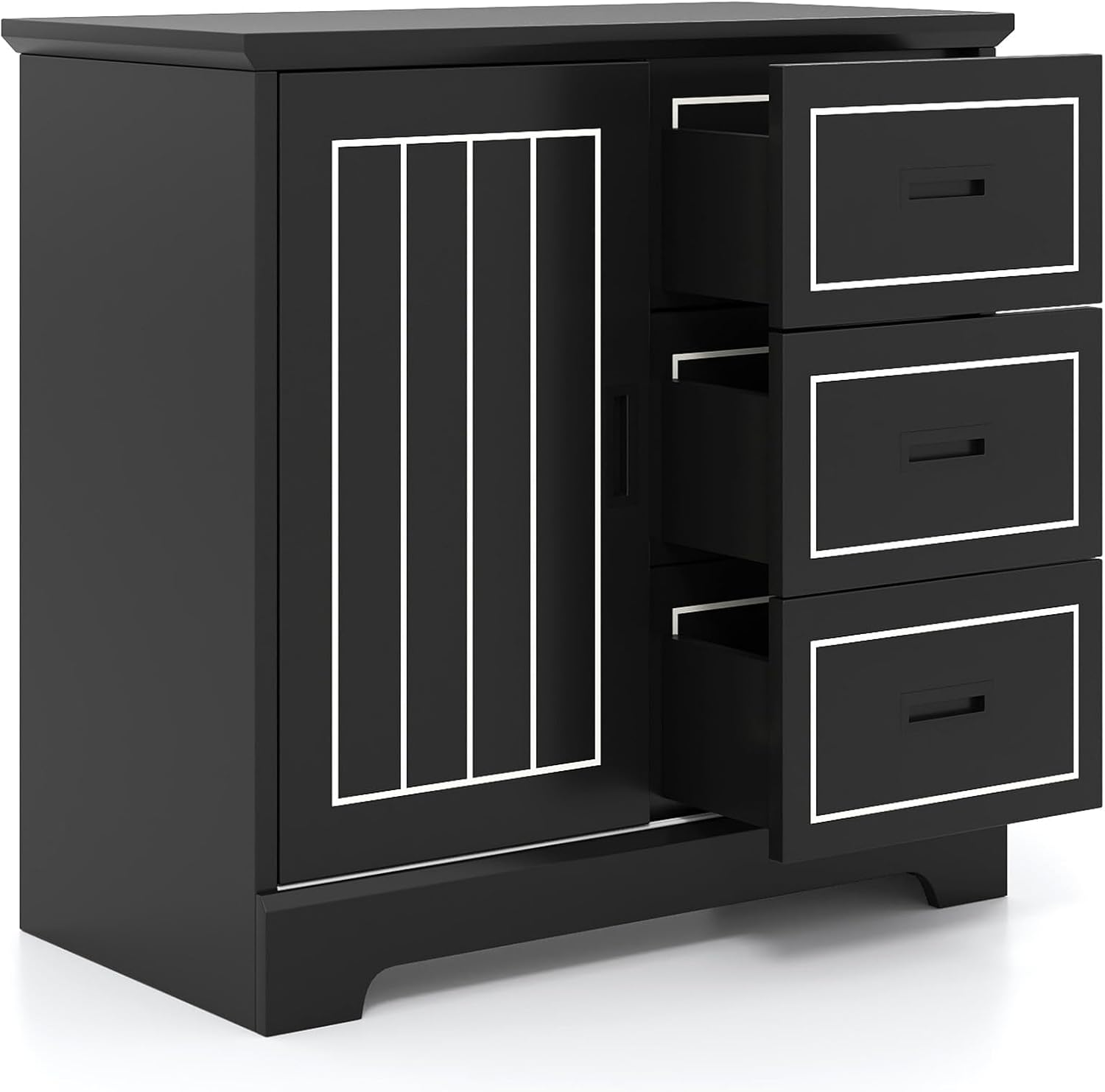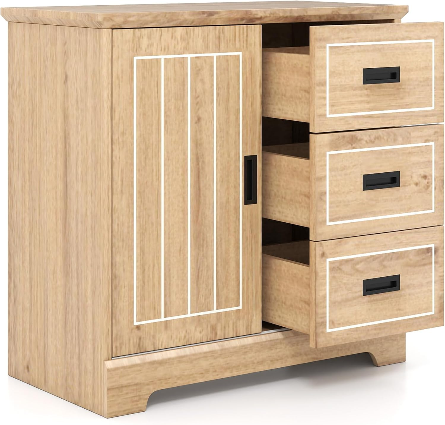 Sideboard Cabinet 3 Drawer Sliding Door Kitchen Storage Cupboard Adjustable