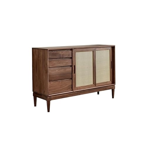 NEBE Sideboard 120x40x80cm Modern Walnut Kitchen Storage Cabinet, Home Entrance Table, Solid Wood Rattan Sliding Door Furniture Cupboard