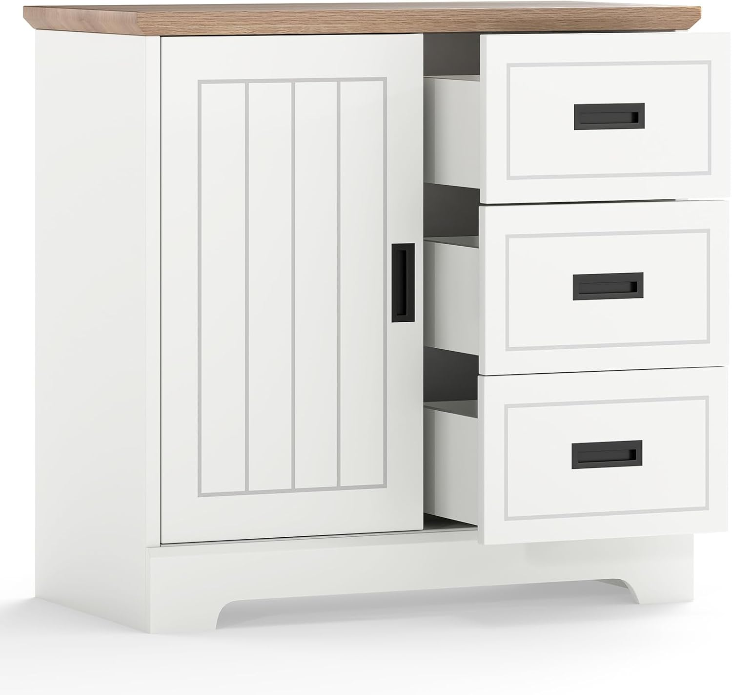 Kitchen Storage Cabinet Sliding Barn Door Cupboard Drawer Shelves Farmhouse Unit