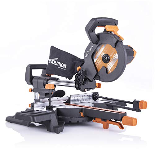 Evolution Power Tools R210SMS-300+ Sliding Mitre Saw with Multi-Material Cutting, 45 Degree Bevel, 50 Degree Mitre, 300 mm Slide, Blade Included Cuts Wood Plastic Metal & More (1500 W, 230 V, 210 mm)