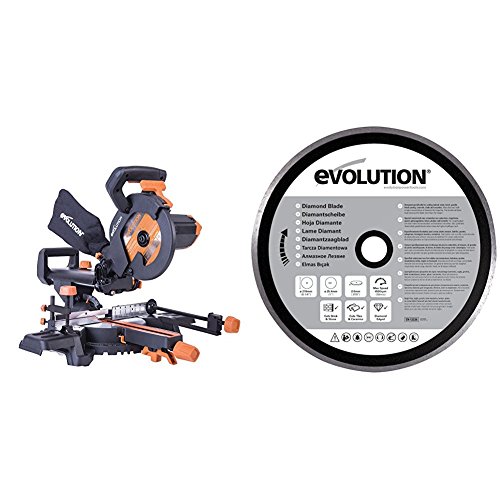 Evolution Power Tools R255SMS-DB+ Multi-Material Double-Bevel Sliding Mitre Saw, 255 mm, (110 V) with 255 mm Diamond Blade