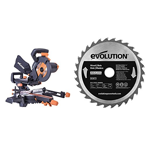 Evolution Power Tools R210SMS+ Multi-Material Sliding Mitre Saw with Plus Pack, 110 V, 210 mm RAGE Multi-Purpose Carbide-Tipped Blade, 210 mm