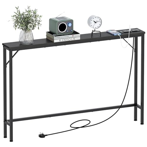 HOOBRO Console Table with Power Outlets, Slim Console Table with Charging Station, Hallway Table, Narrow Sofa Table for Small Space, Hallway, Entryway, Living Room, Rustic Brown and Black EBF75KXG01G1