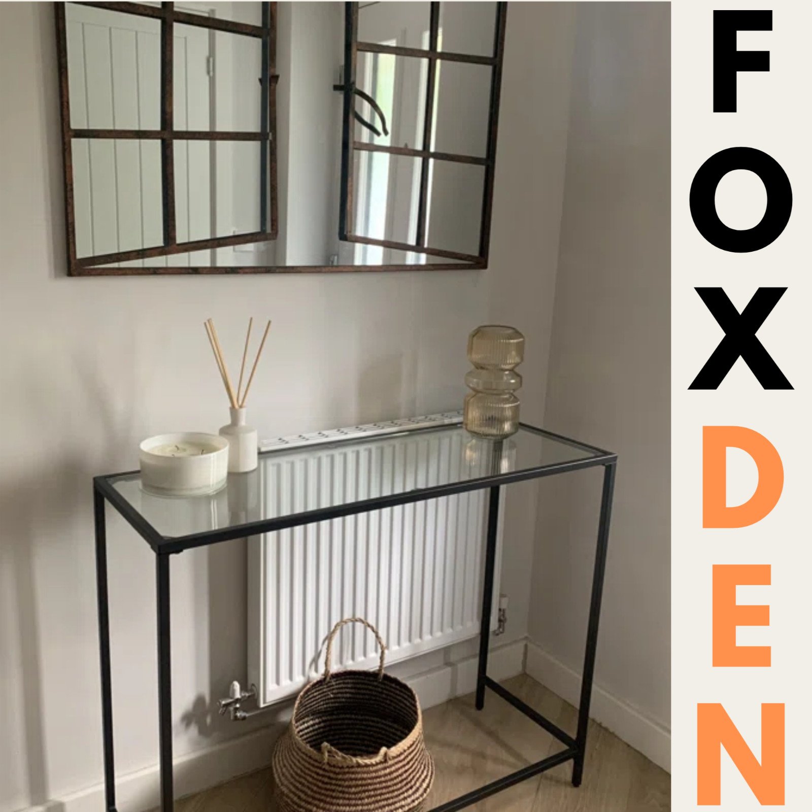 Slim Black Glass Console Table Living Room Metal Shelving Unit Display Cabinet