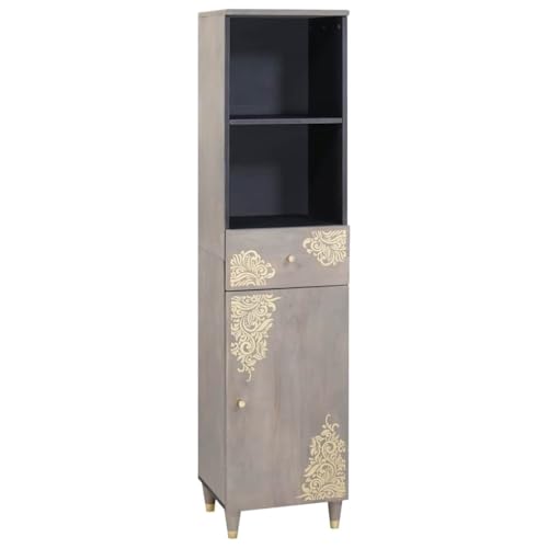 GeenYuu Highboard Grey Sonoma 50 x 42.5 x 185 cm, Wood Material, Slim Chest of Drawers with Plenty of Space, Moisture Resistant, Timeless Design