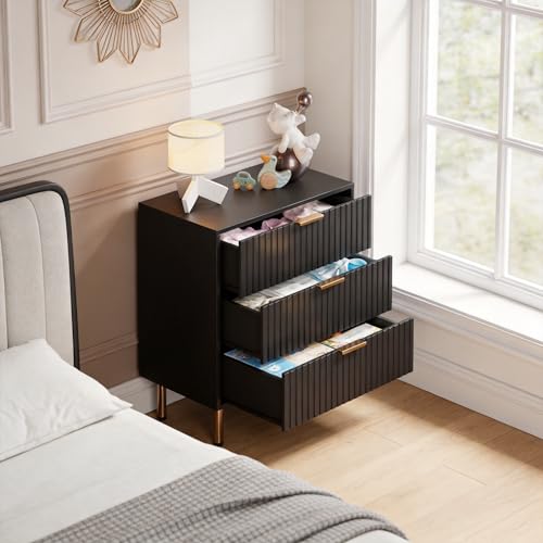 GeenYuu Sideboard, Black, 57 x 35 x 70 cm, Wood Material, 3 Compartments, Storage Space, Slim Chest of Drawers for Living Room, Bedroom, Office, Robust Construction
