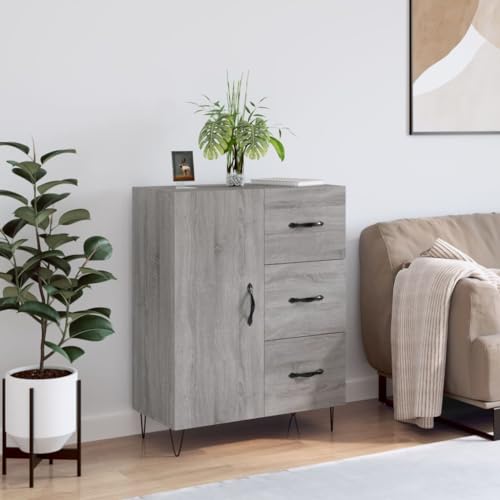 GeenYuu Sonoma Sideboard, Grey, 104.5 x 35.5 x 67.5 cm, Made of Robust Wood Material, Slim Chest of Drawers with Lots of Storage Space, Ideal for Living Room and Office