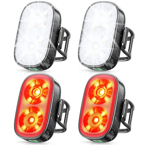 ISEYOU Bike Lights Front and Back, Ultra-Slim USB-C Rechargeable Bike Light, [5+6 Lighting Modes] & IP65 Waterproof, Super Bright Bicycle Cycle Lights Set, Compact Safety Lights for Night Riding
