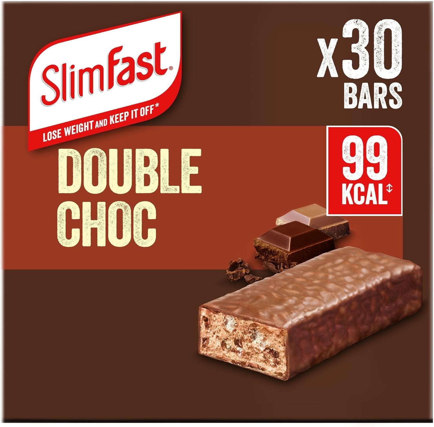 30 x SlimFast Chocolate Snack Bars, Low-Calorie Healthy Snacks For Adults, 26g