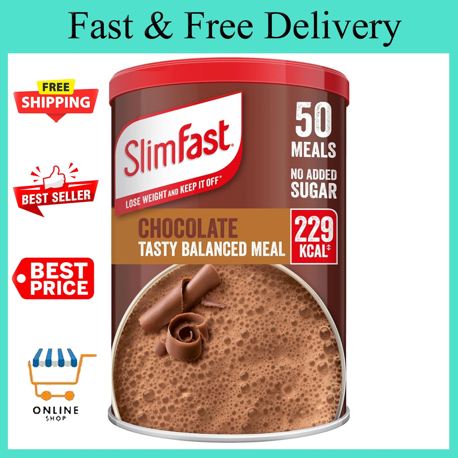 SlimFast (Chocolate 50 serves) Meal Replacement Shake for Weight Loss & Balanced Diet, Vitamins and Minerals, Low Calorie, High Protein,