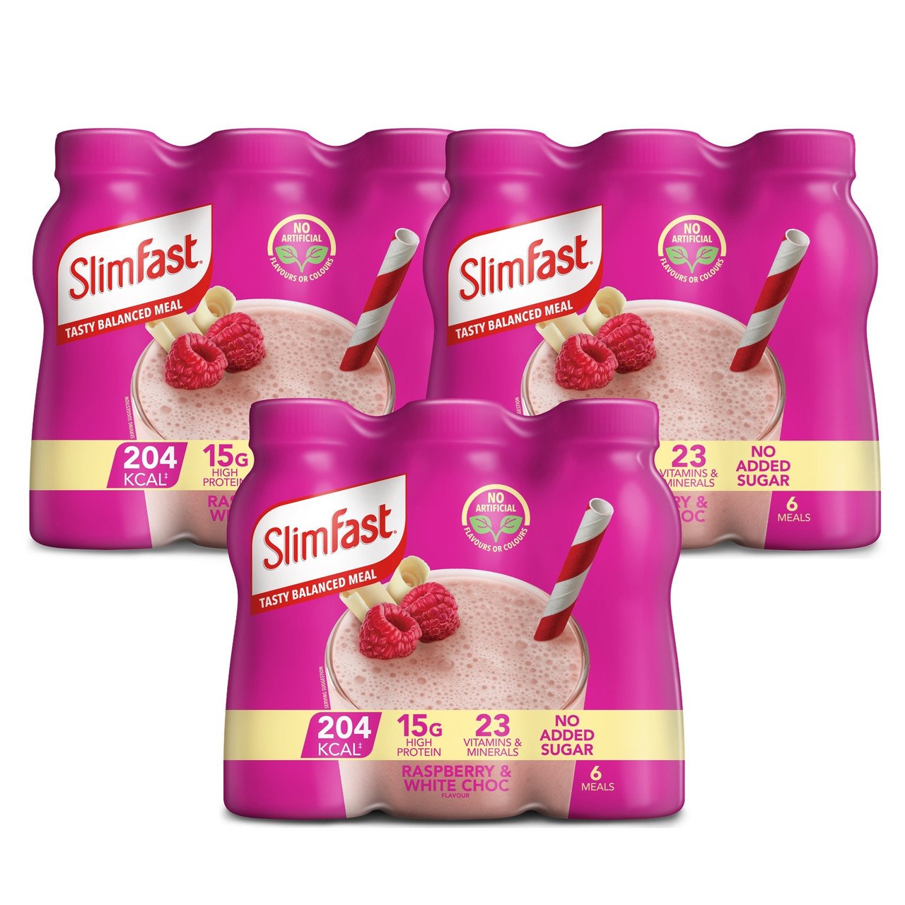 SlimFast Ready To Drink Shake, Tasty, Balanced Shake with 15g protein, 23 Vitamins and Minerals No Sugar, White Chocolate & Raspberry Flavour, 6 x 325 ml
