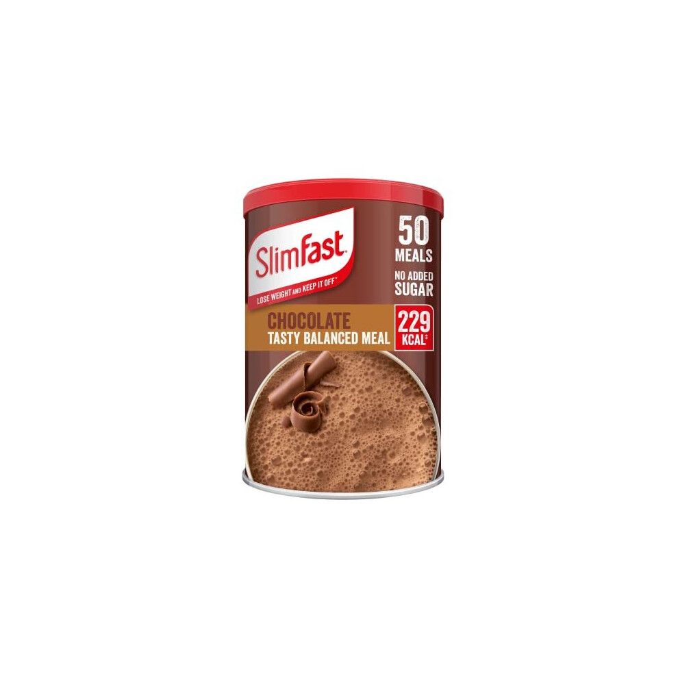 SlimFast Balanced Meal Shake - Chocolate, 50 Servings, No Added Sugar, High in Fibre, Protein & 23 Vitamins & Minerals, Meal Replacement
