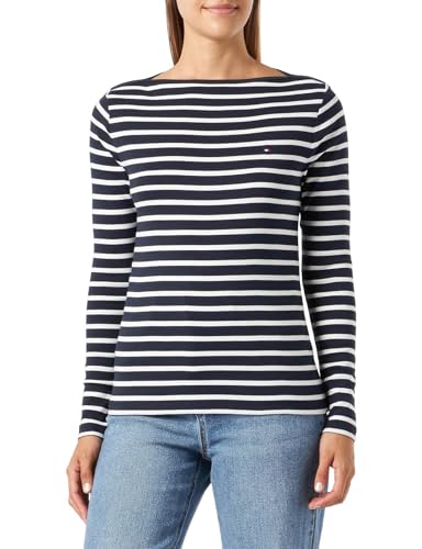 Tommy Hilfiger Women's Long-Sleeve Slim Cody T-Shirt Rib Cotton, Multicolor (Breton Desert Sky/Ecru), M