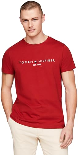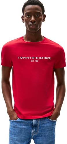 Tommy Hilfiger Men’s Short Sleeve Slim Fit T-Shirt, Red (Medium Red), XL
