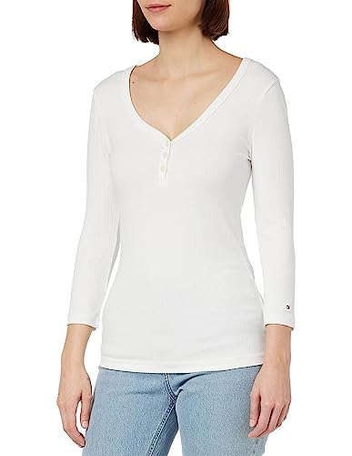 Tommy Hilfiger Women 1985 Slim Slub Long-Sleeve T-Shirt Basic, White (Ecru), M
