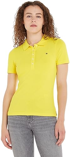 Tommy Hilfiger Women's Short-Sleeve Polo Shirt Slim Fit, Yellow (Vivid Yellow), XL