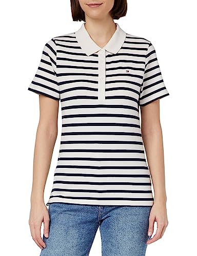 Tommy Hilfiger Women 1985 Slim Piqué Short-Sleeve Polo Shirt Slim Fit, White (Breton Stripes W White/Desert Sky), L
