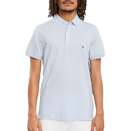 Tommy Hilfiger Men’s Short Sleeve 1985 Slim Fit Polo Shirt, Blue (Breezy Blue), M