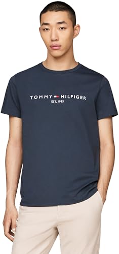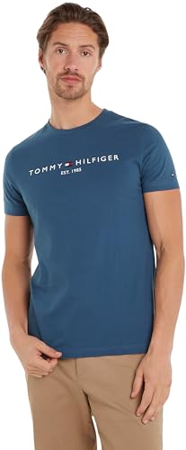 Tommy Hilfiger Men’s Short Sleeve Slim Fit T-Shirt, Blue (Aegean Sea), 3XL Slim Fit